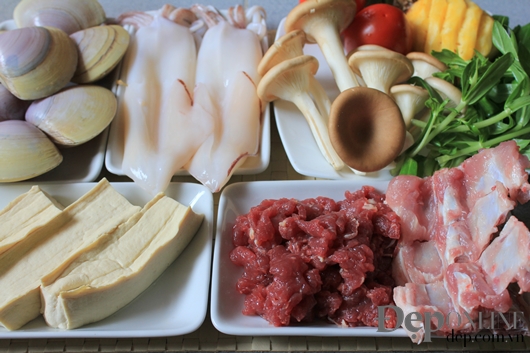 (Các nguyên liệu nhúng lẩu có thể thay đổi, tăng hoặc giảm tùy sở thích)