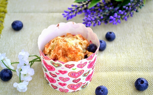- Trộn 2 hỗn hợp trên với nhau, sau đó cho trái việt quốc (blueberries) vào và trộn nhẹ để hỗn hợp quyện đều. Chia hỗn hợp bột vào từng khuôn.