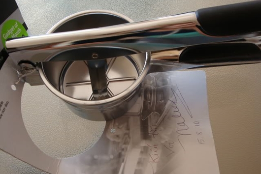 Chiếc khuôn ép được làm từ hai chất liệu cơ bản là nhựa và kim loại. Có công dụng chính để ép và nghiền khoai tây.