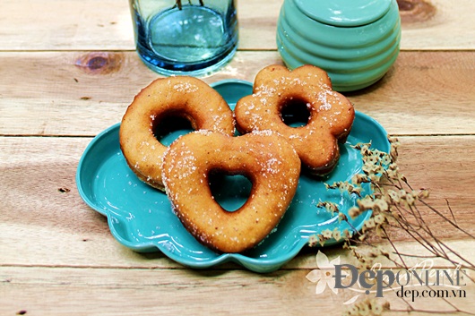- Dùng donut cutter (khuôn cắt bánh donut) tạo hình bánh. Cac bạn nhớ cắt bột sát nhau, hạn chế bột thừa để được nhiều bánh hơn nhé.