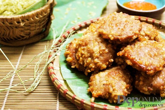 Chả cốm mới rán thơm lừng, giòn tan bên ngoài, lại dẻo mềm bên trong, ăn một miếng rồi lại thèm được ăn thêm miếng nữa…