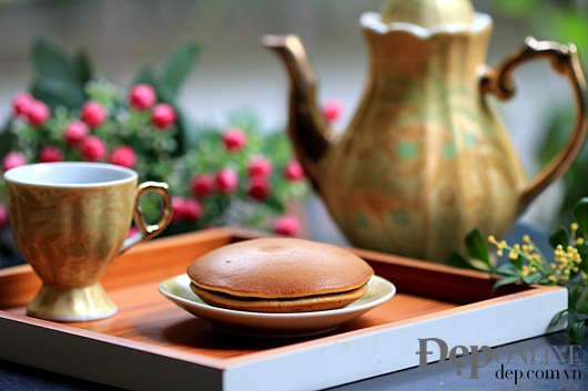 - Làm nóng chảo chống dính với mức lửa nhỏ nhất có thể, nhỏ vài giọt dầu ăn và thoa khắp mặt chảo tạo thành lớp dầu thật mỏng. Nhấc chảo ra đặt vào một chiếc khăn ẩm giúp chảo nguội bớt rồi múc bột đổ cao tay và liền mạch, để khi bột chảy xuống đến chảo sẽ lan đều theo hình tròn. Muốn bánh có kích cỡ đều và đẹp thì mỗi lần tráng bánh, các bạn đong và đổ một lượng bột bằng nhau. Không đổ quá dày bánh sẽ bị chai hoặc phồng lớn gây khó phết nhân, nếu đổ quá mỏng bánh sẽ phẳng và không có độ phồng xốp.