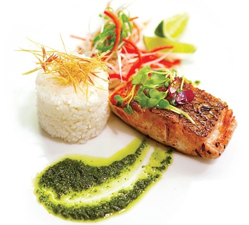 Cho cá vào đĩa và trang trí với tỏi tây, ớt sợi, hành lá, ngò, chanh cắt múi. Dùng cùng cơm trắng.